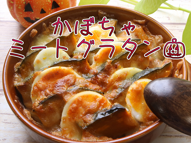 ハロウィンに高菜漬とほっくほくかぼちゃのミートグラタン